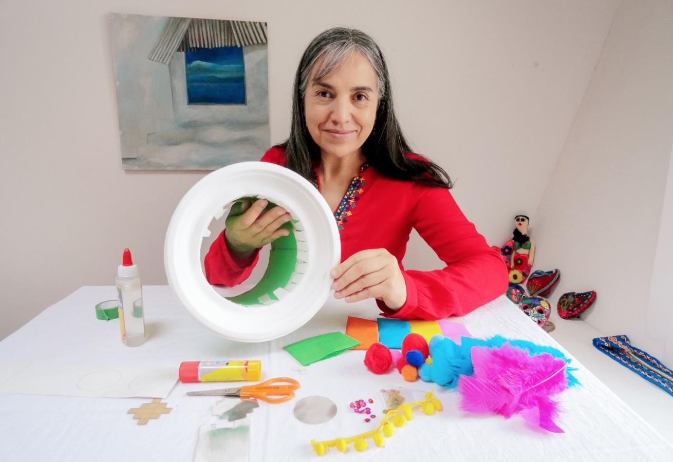 I started crafting when I was very young.  I loved creating things from scratch, like sewing clothes for my doll named Peta. With my sisters and friends, I would make dishes, pots and cups out of clay and dry them in the sun. We made wings out of old cardboard, and then tried to fly them by jumping off a tall ramp and falling onto a big pile of hay. Once I made myself a pair of shoes out of an old bicycle tire, and I swore I could run faster! LOLl!  As a teenager, I used some of my dad’s wood and some of my mom's yarn to make lamps for my family. While in college, I would make and sell ornamental scrolls with handwritten quotes about freedom, or with song verses by the Chilean musicians Violeta Parra and Victor Jara.
