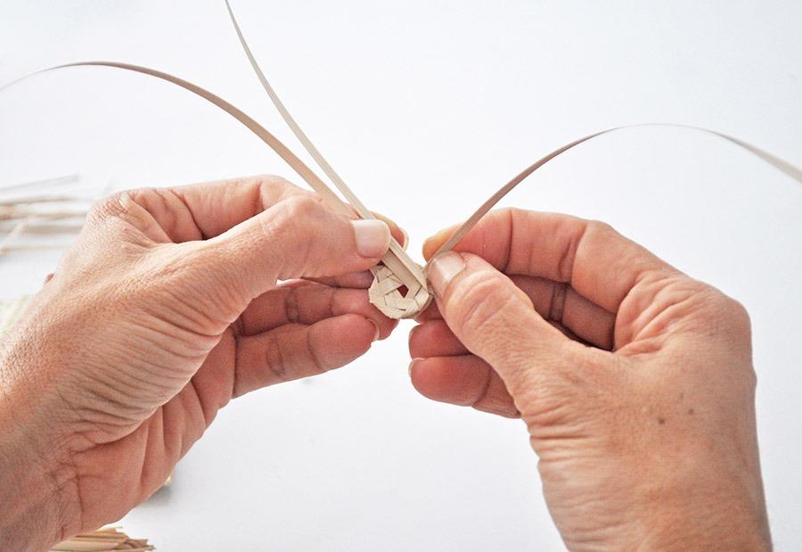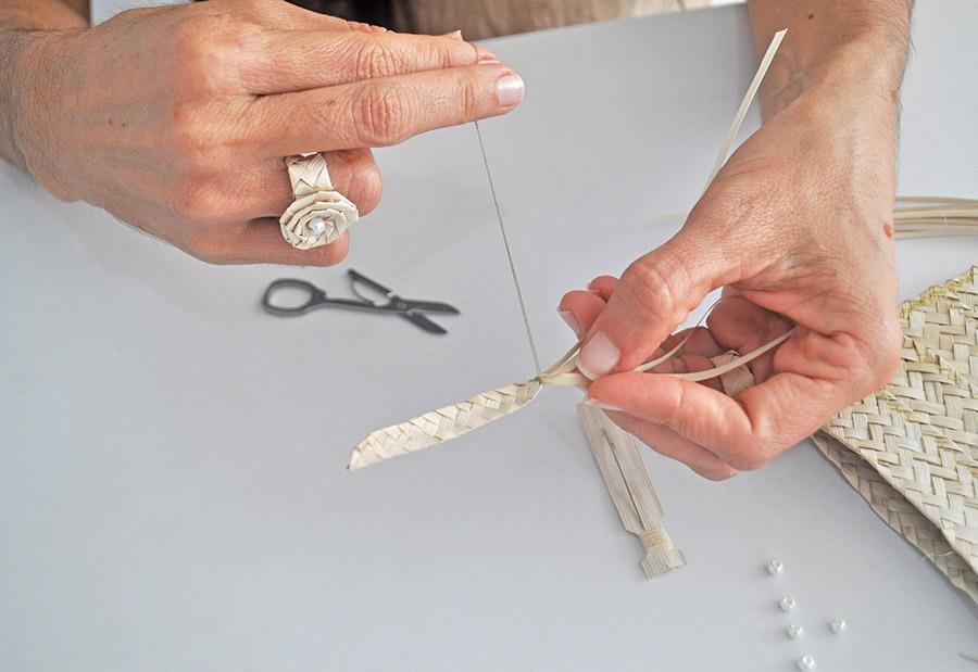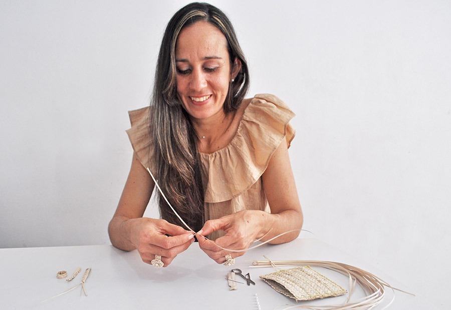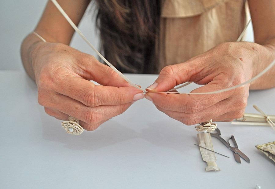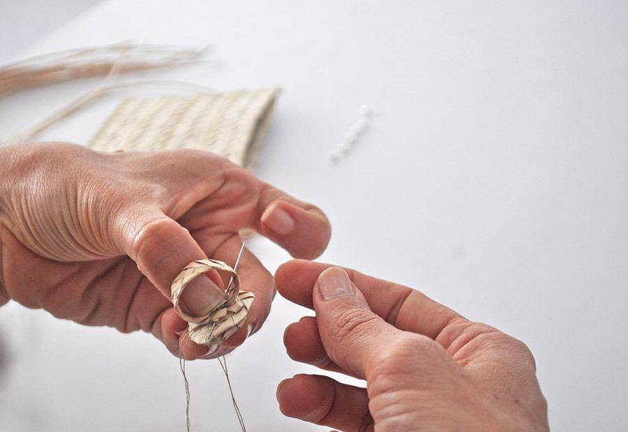 This GLOkit contains: 24 pieces of cogollo, 6 beads, a needle and thread-enough material to make six rings. These materials have been packed in a case made out of cogollo, which can later be used as a small wallet.