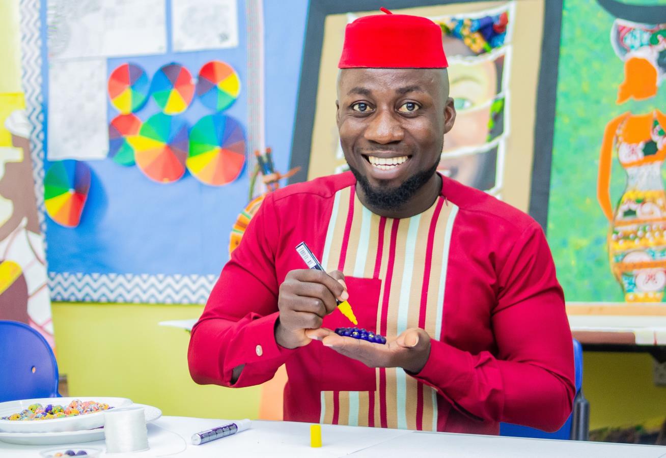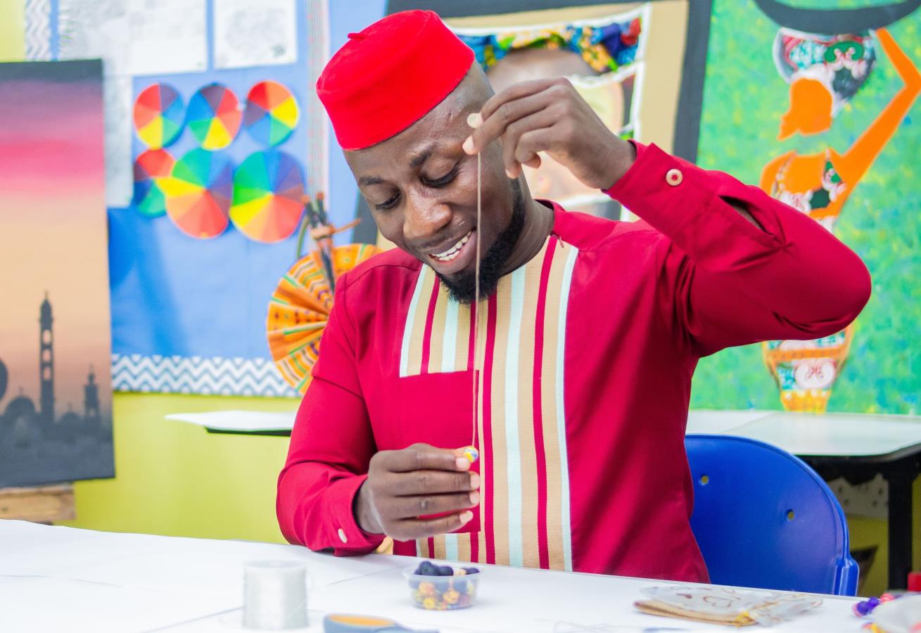 Mr. Kingsley was charming and informative and made both my kids (4yo and 7yo) feel at ease. He sent plenty of interesting links ahead of time about beads in Ghana, which my older daughter enjoyed reading. She probably would have enjoyed some general information about Ghana as well.