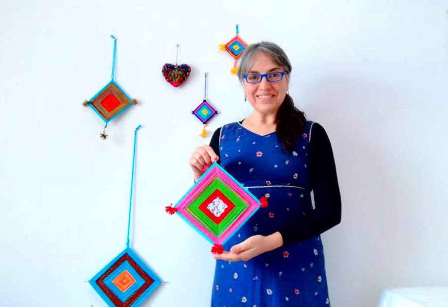 I started crafting when I was very young. I loved creating things from scratch, like sewing clothes for my doll named Peta. With my sisters and friends, I would make dishes, pots and cups out of clay and dry them in the sun. We made wings out of old cardboard, and then tried to fly them by jumping off a tall ramp and falling onto a big pile of hay. Once I made myself a pair of shoes out of an old bicycle tire, and I swore I could run faster! LOLl! As a teenager, I used some of my dad’s wood and some of my mom's yarn to make lamps for my family. While in college, I would make and sell ornamental scrolls with handwritten quotes about freedom, or with song verses by the Chilean musicians Violeta Parra and Victor Jara.