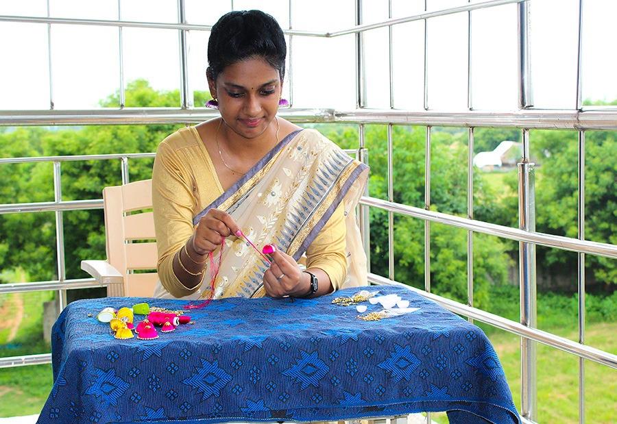 Art was always an important part in my life, and I have loved making art and teaching craft-making to children ever since I was very young.  I first started making craft works when I was eight years old, when I made small cups out of coconut tree leaves to be used for making food in the village where there were not many utensils found. These cups were used to boil food (like dough) placed inside a closed vessel filled with water.  When I was ten years old I learned from my grandmother how to make Jhumkas, which are earrings that are worn during most of the traditional festivals in our country.  They are considered to be a sacred and important part of our culture, and I am excited to share this craft with people across the world.