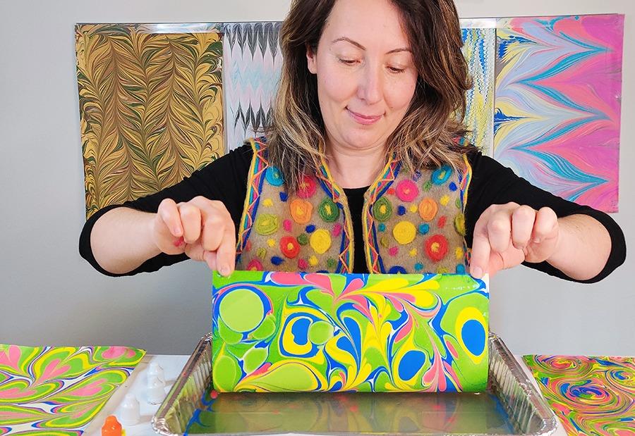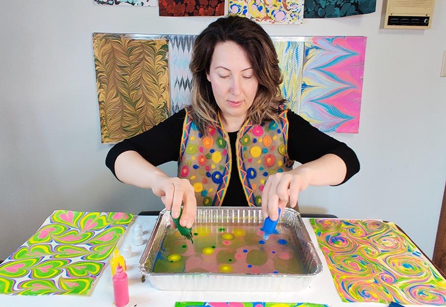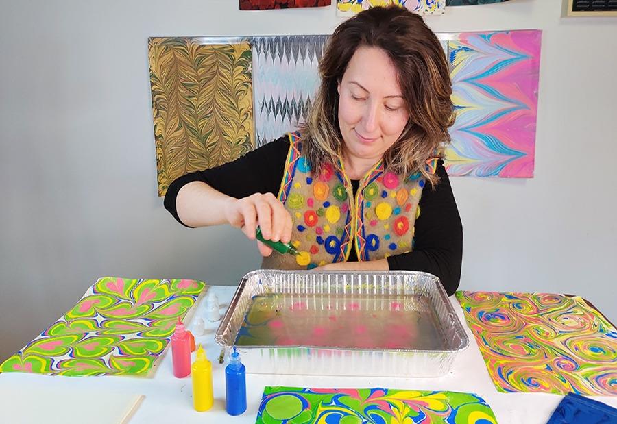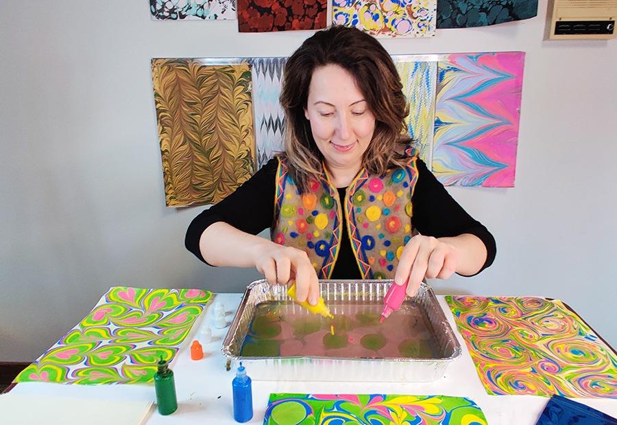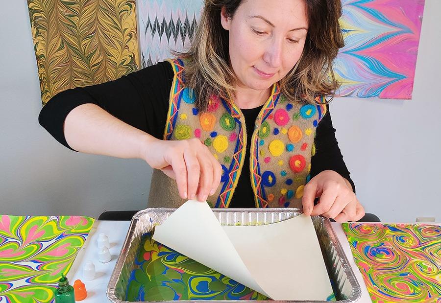 I was born in Turkey, and ebru is a traditional art in my country.  I learned about ebru art from various masters when I lived in Istanbul.  I started as a hobby, but then when we moved to Australia my passion for ebru art evolved into a successful business.